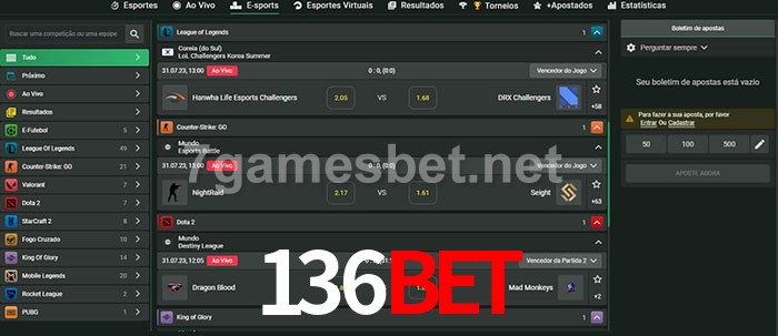 O 136bet oferece uma grande seleção de opções de apostas em e-sports com probabilidades competitivas